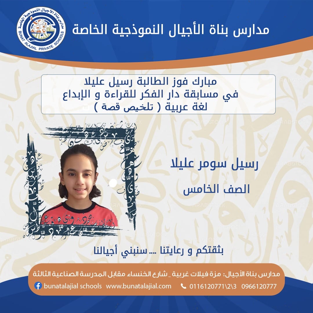 إدارة قسم الابتدائي وقسمي الاعدادي والثانوي (إناث) في مدارس بناة الأجيال