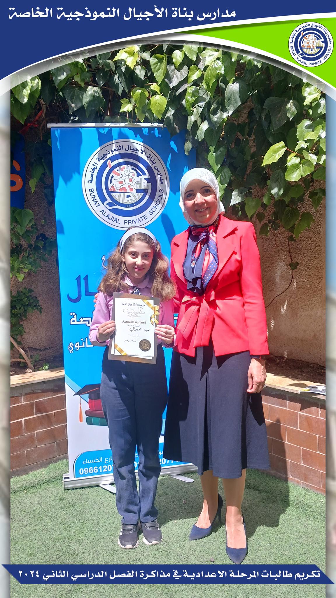 تكريم الطلاب لتفوقهم في مذاكرة الفصل الثاني للعام الدراسي 2023 - 2024 كرّمت المدير العام لمدارس بناة الأجيال الخاصة (السيدة لميس الرجّال) طلاب وطالبات المرحلتين الاعدادية والثانوية لحصولهم على النتائج المتميزة في مذاكرة الفصل الثاني. 2024-05-08 نشر :